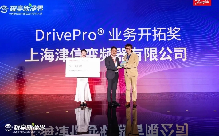 會上,上海津信榮獲丹佛斯傳動頒發的年度“DrivePro®務開拓獎”。這也代表了上海津信的技術水平和服務能力,獲得了廠商和客戶的再一次認可和肯定